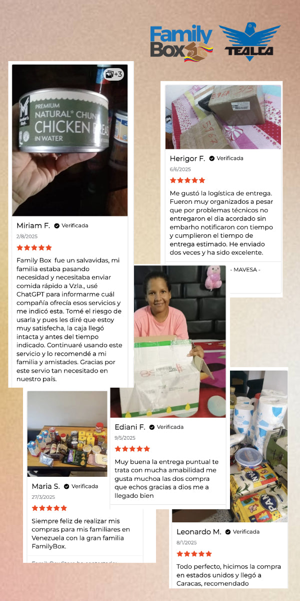 Aquí no hay dudas: lo que compras sí llega, porque todo el proceso —compra, preparación y entrega— queda dentro del ecosistema TEALCA + FamilyBox.